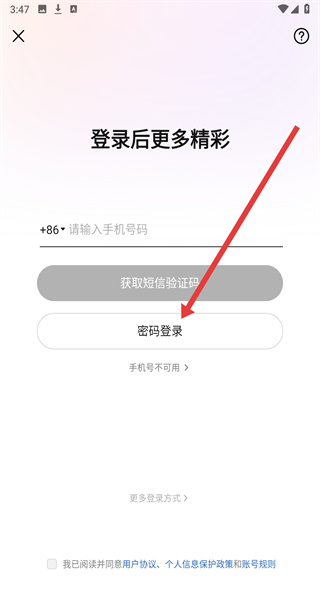 3、在进入到登录页面中,可以点击密码登录按钮,切换登录方式。