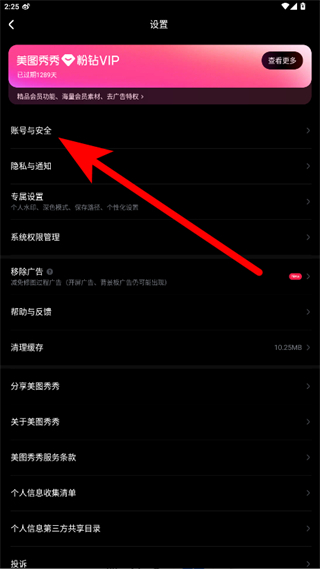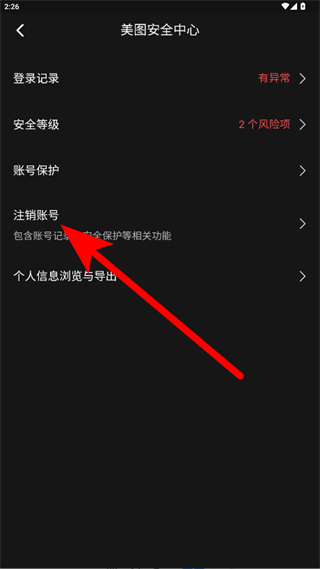 4、在账号与安全页面点击美图安全中心,进入美图安全中心页面后点击注销账号,按照提示完成美图秀秀账户的注销操作。