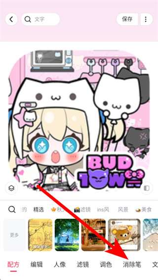 3、在编辑页面,点击消除笔选项,进入消除笔操作界面。
