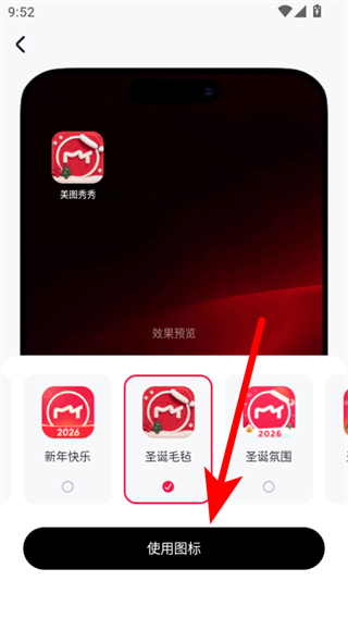 4、在图标选择页面,挑选想要更换的图标样式如圣诞毛毡,点击底部的使用图标按钮,即可完成桌面图标的修改。