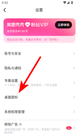 3、在设置界面中,找到并点击桌面图标选项,进入图标选择页面。
