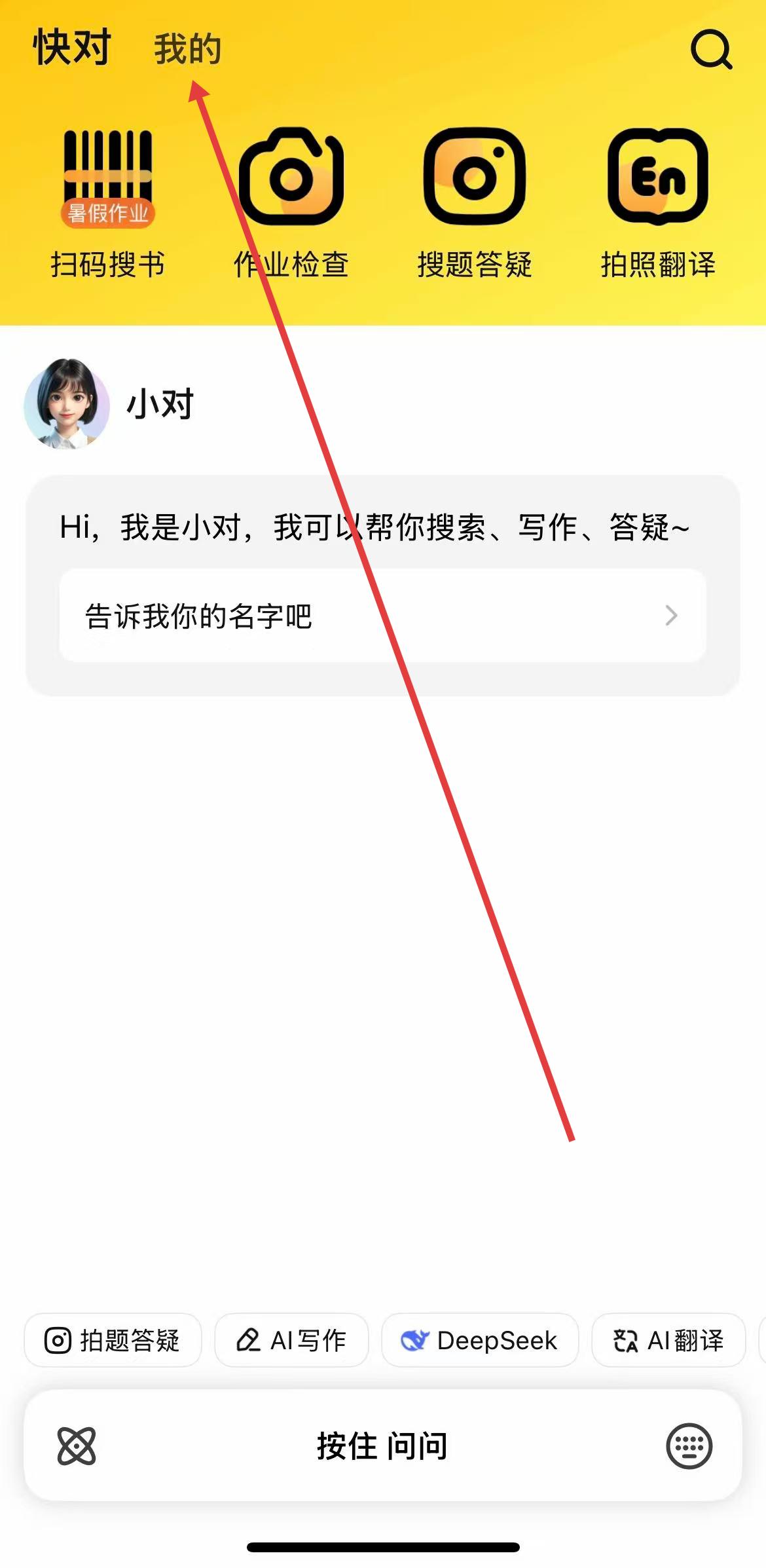 1、打开快对作业APP,点击页面顶部的我的,进入个人中心页面。