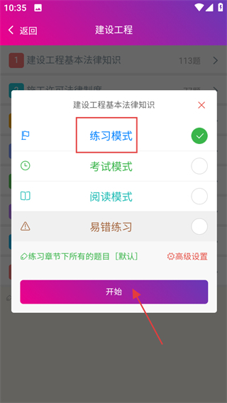 4、选定练习模式后点击开始,即可进入对应知识点的刷题练习。
