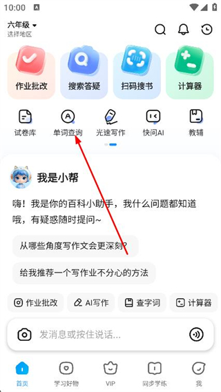 1、打开作业帮,在首页找到单词查询选项并点击。