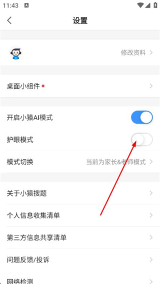 小猿搜题app怎么开启护眼模式