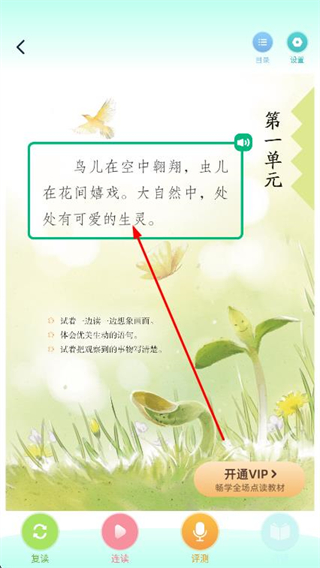 3、点击下方的免费试读按钮,进入具体的课文内容页面。