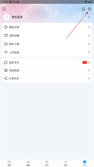 2、在个人中心页面的右上角,点击设置的功能图标,进入设置页面。
