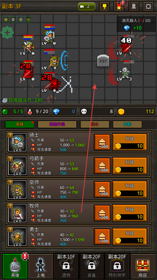 3、进入副本3F,指挥英雄攻击敌方单位,削减其血量。