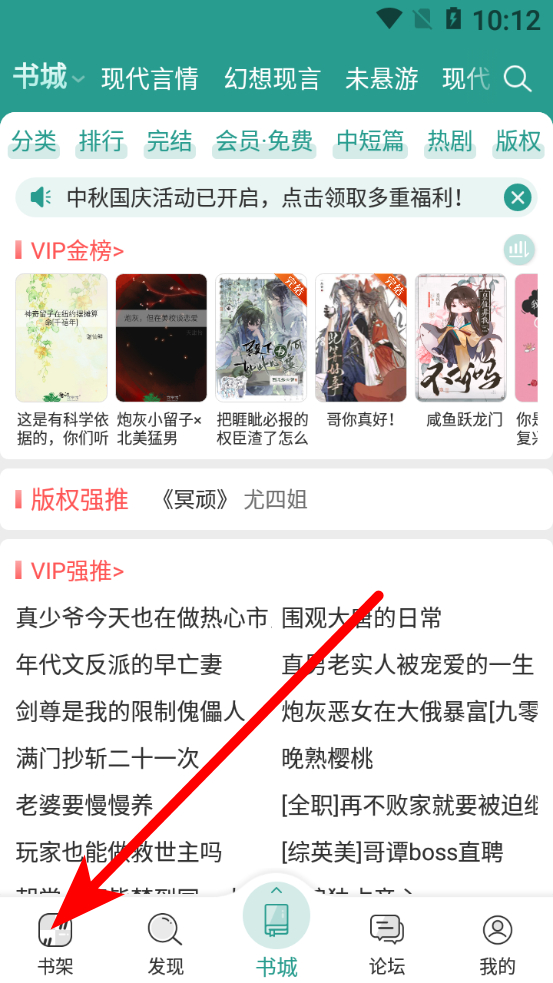 1、在晋江小说阅读书城页面,点击左下角书架选项,进入书架界面。