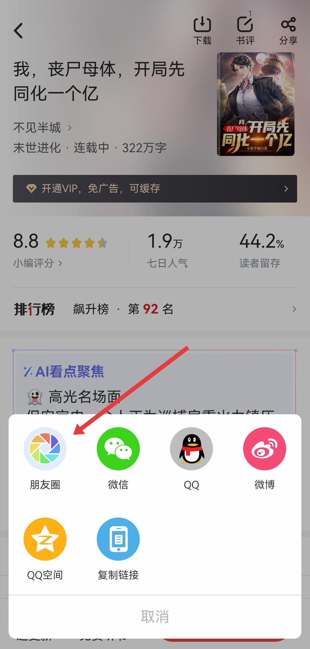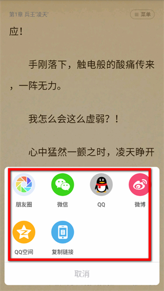 4、在分享渠道列表中,选择任意渠道,即可将小说分享给好友。