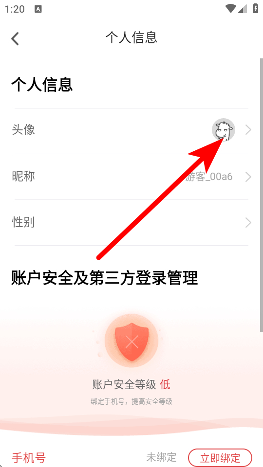 2、在个人页面中,点击当前头像或昵称区域,进入个人信息展示页。
