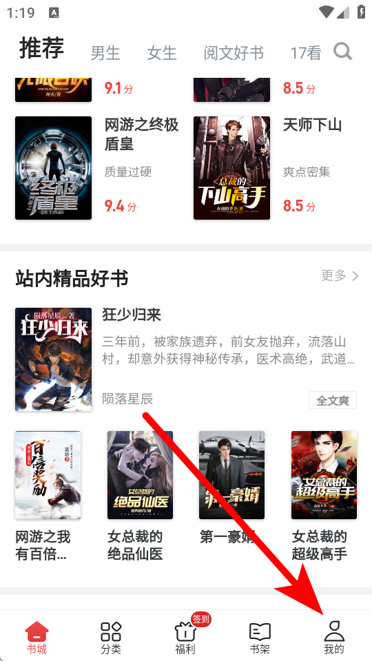 1、在追书神器书城页面,选择要评论的小说,进入小说详情页面。