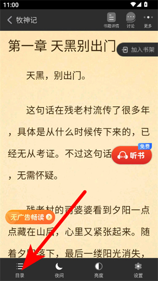3、在阅读页面,点击左下角目录选项,展开目录列表。