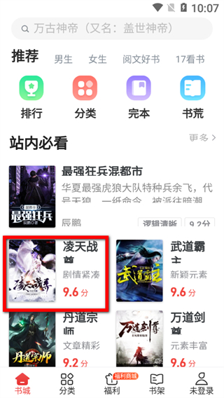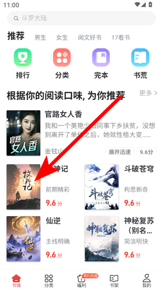 1、在追书神器书城页面,点击要分享的书籍,进入书籍详情的页面。