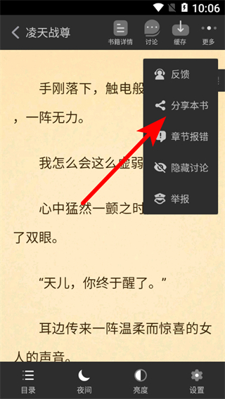 3、在功能菜单中,点击分享本书选项,弹出分享渠道列表。