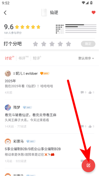 4、在讨论页面,点击右下角编辑按钮,即可进行评论操作。