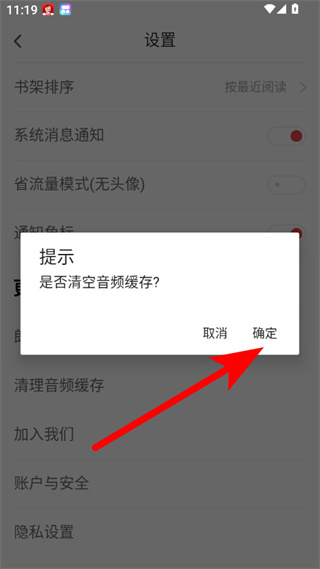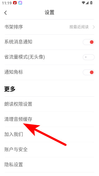 2、在设置页面,找到清理音频缓存选项,点击该选项。