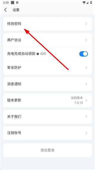 3、在设置页面点击修改密码选项,进入修改密码页面。