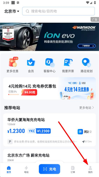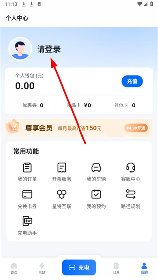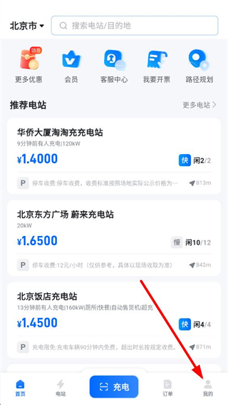 1、在云快充app首页点击我的选项,进入个人中心页面。