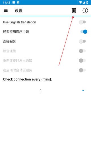 3、在设置页面右上角找到垃圾桶样式的图标,点击触发清除历史的确认弹窗。