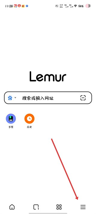 1、打开狐猴浏览器,点击页面右下角的三条横线按钮。
