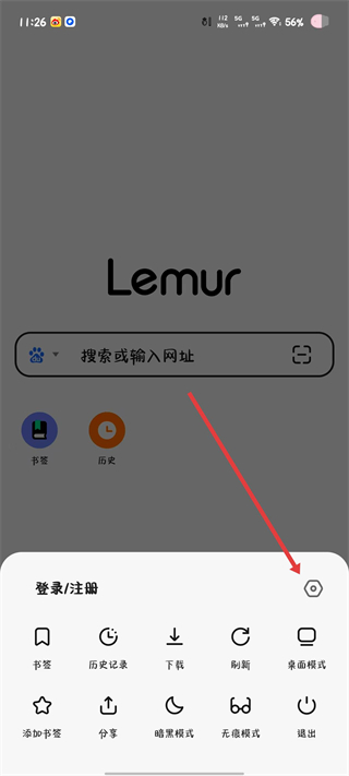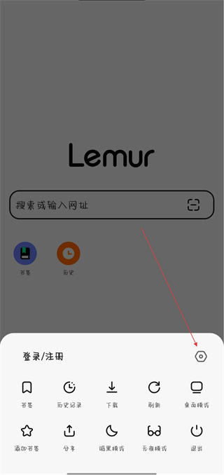 1、在狐猴浏览器界面,点击底部功能菜单中的设置图标,进入设置的页面。