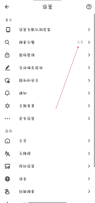 3、进入设置页面后,点击搜索引擎选项。