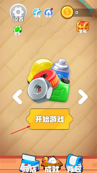 1、点击界面中黄色的开始游戏按钮,进入物品整理的游戏关卡。