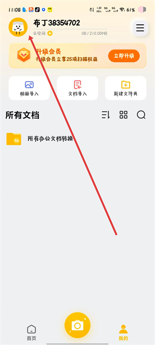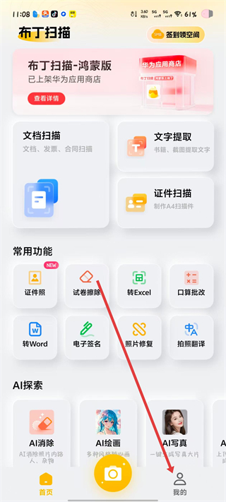 1、打开布丁扫描软件,点击我的选项,进入个人中心页面。