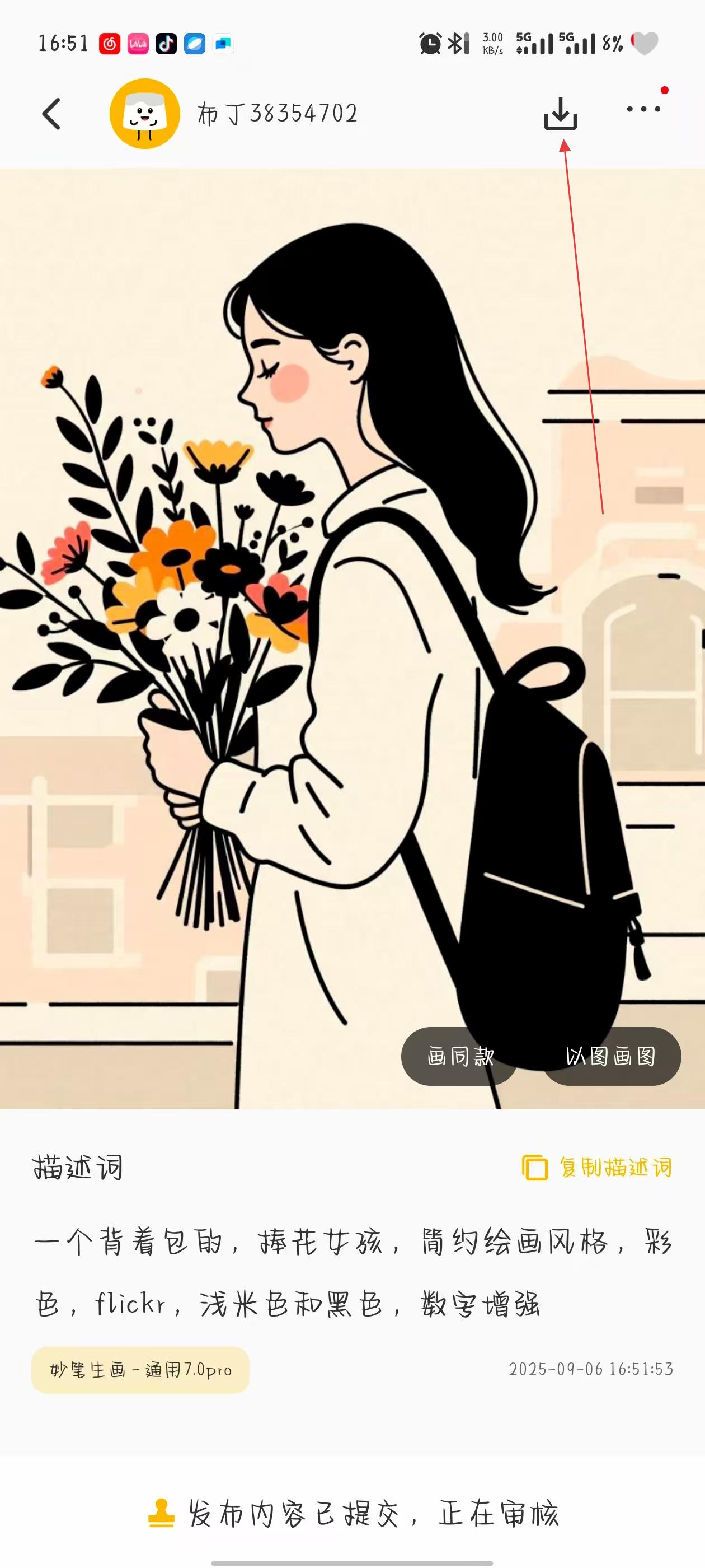 4、图像生成后,若满意,点击页面上方的下载按钮,将图像保存到手机相册。