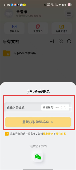 4、在验证码输入框中填写收到的短信验证码,完成后即可登录。