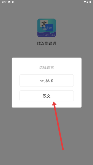 2、进入APP时需要选择初始语言,这里可以点击汉文选项进入。