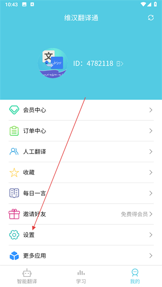 1、打开维汉翻译通软件,点击底部导航栏的我的选项,进入个人中心。