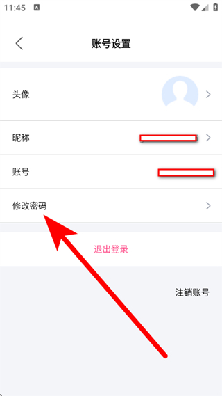 3、在账号设置页面,点击修改密码,进入设置密码页面。
