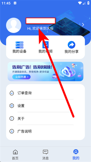 2、在个人页面,点击欢迎来到大谷区域,进入账号设置页面。