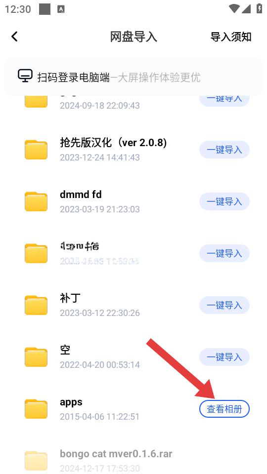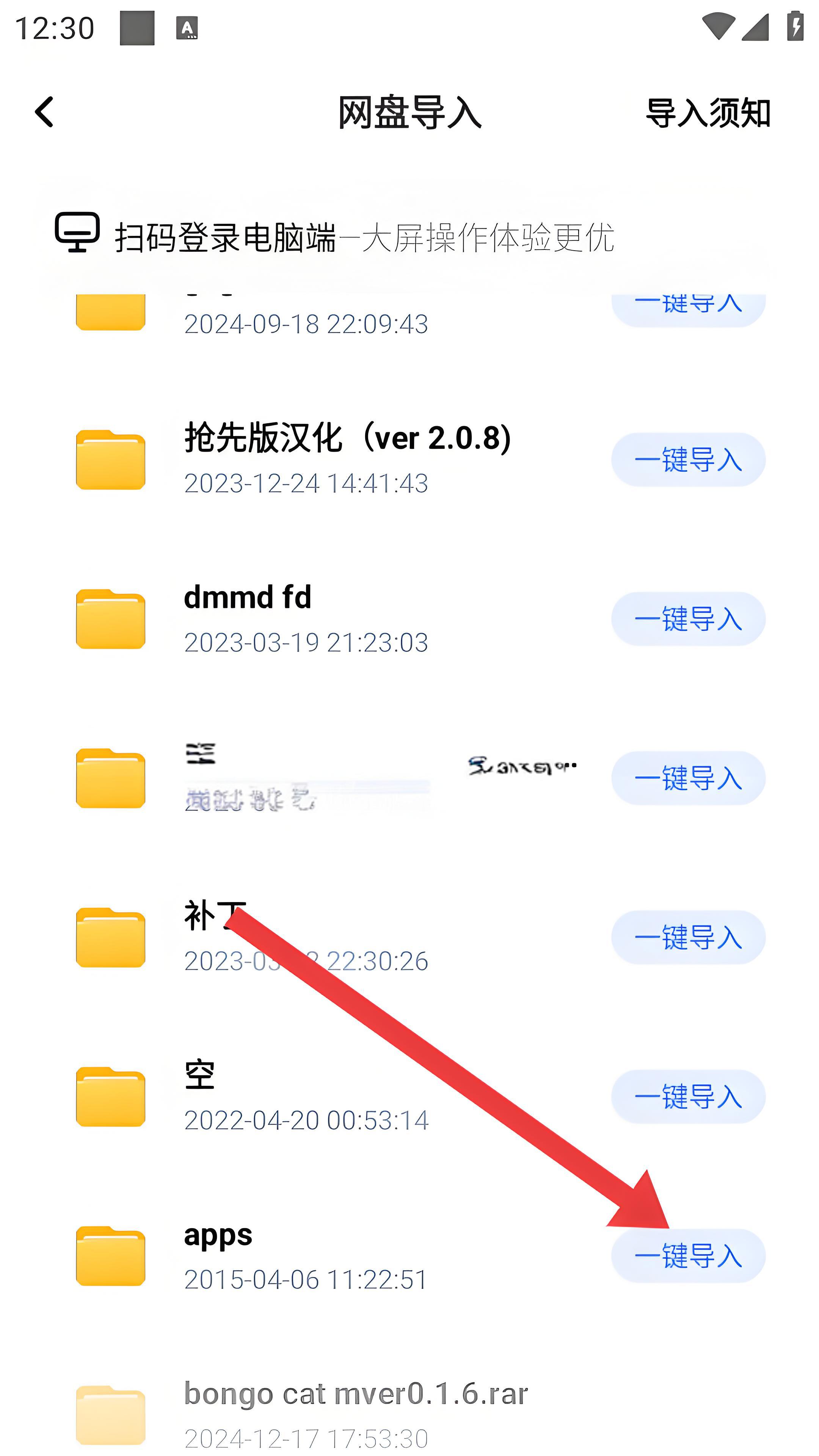 2、在网盘导入页面,找到需要导入的百度网盘文件夹,点击其右侧的一键导入按钮。