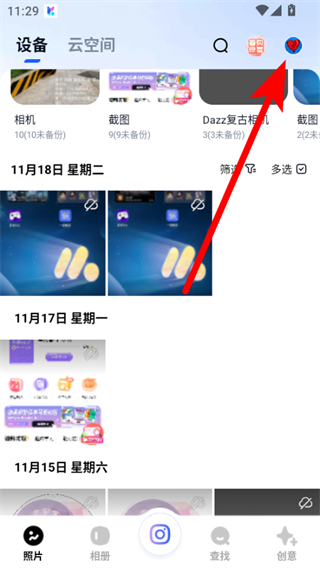1、打开一刻相册APP,点击页面右上角的头像图标,展开个人功能菜单。