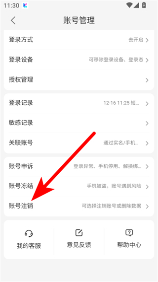 4、在账号管理页面,找到并点击账号注销选项,即可按提示流程完成账号注销操作。