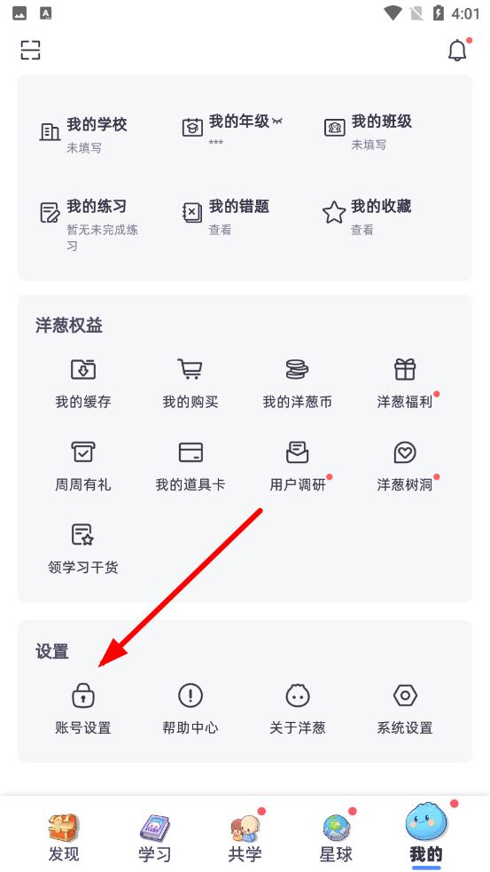 3、进入账号设置页面后,在页面底部找到退出登录按钮,点击该按钮,即可完成洋葱学园的退出登录操作。