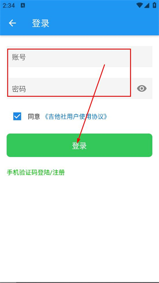 4、在登录页面,填写账号和密码,点击登录,完成账号登录。