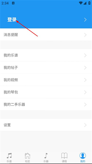 2、在吉他社首页,点击底部我的选项,进入个人页面。