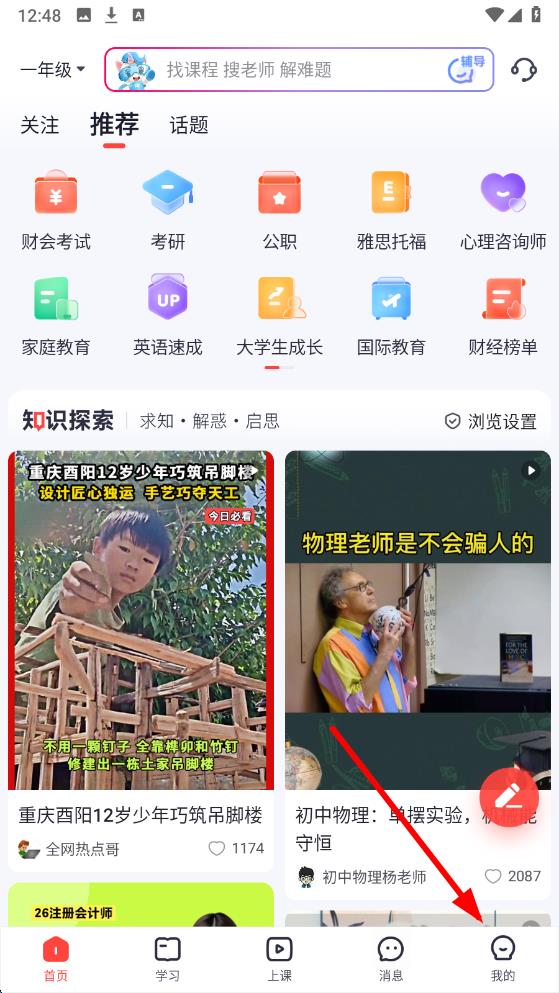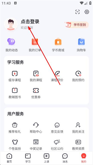 1、打开高途app进入首页,点击底部导航栏中的我的选项进入个人相关界面。