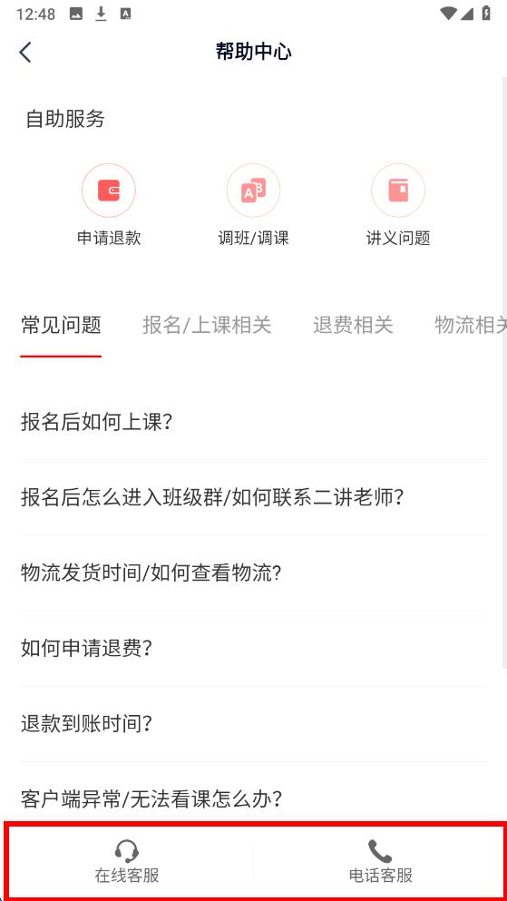 3、进入帮助中心页面后,在底部就能看到在线客服和电话客服选项,根据个人选择联系客服的方式。