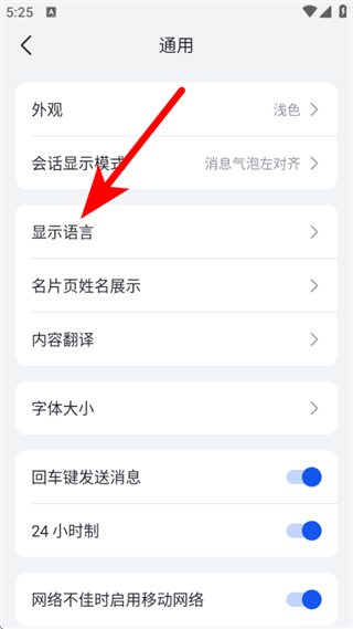 4、在通用设置页面,点击显示语言,即可选择并更改飞书的显示语言。