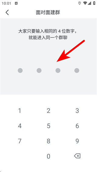 4、在界面输入4位数字,与其他成员输入相同数字,完成面对面建群操作。