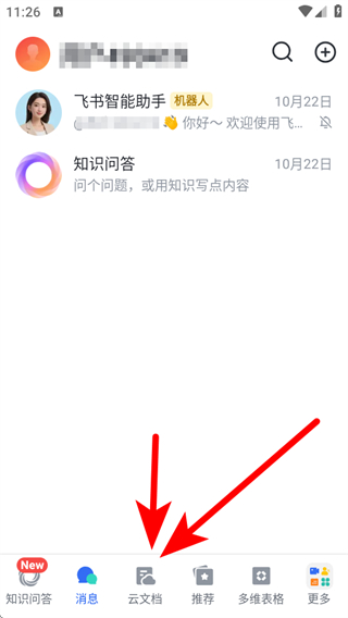 1、打开飞书APP,点击底部云文档,进入云文档页面。