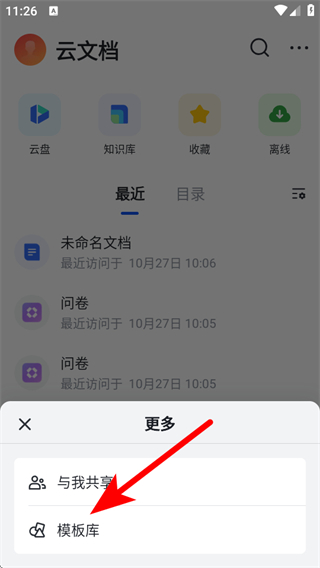 3、在更多选项中,点击模板库,进入选择模板的页面。