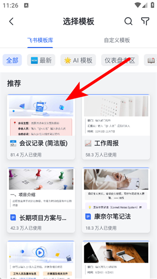 4、在模板库中,选择需要的模板,即可使用该模板进行文档创作。
