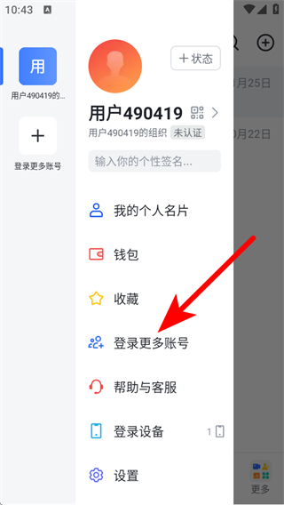 2、在菜单中找到登录更多账号选项并点击,进入多账号登录操作页面。
