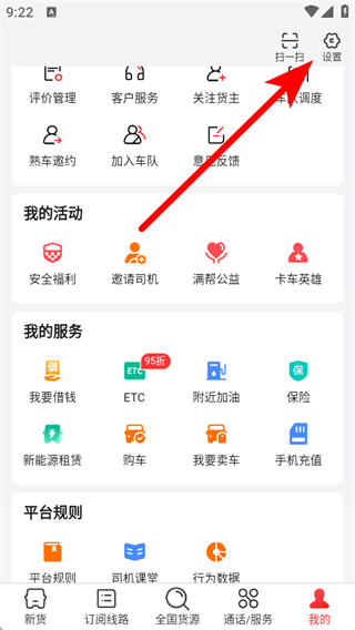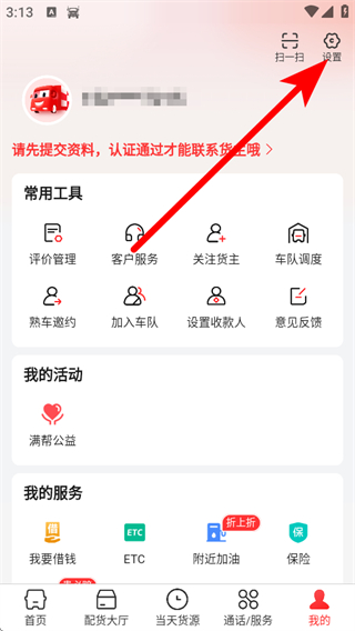 1、打开运满满司机APP,进入我的页面,点击设置进入设置界面。